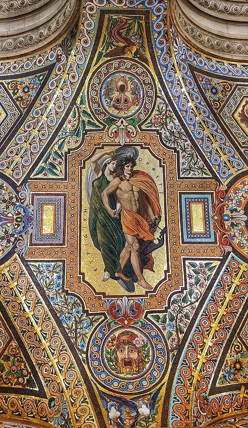 Orpheus and Eurydice in Palais Garnier, Paris. Their names are in Greek, ΟΡΦΕΥΣ (Orpheus) and ΕΥΡΥΔΙΚΗ (Eurydice)