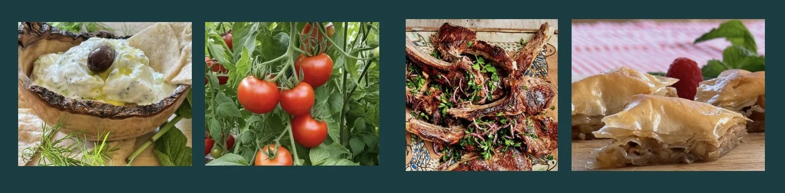Tzatziki - A traditional Greek spread, creamy and cool, combining rich Greek yogurt with grated cucumber, organic minced garlic, tangy lemon juice, organic olive oil, and fresh mint and dill, served over warm pita bread.